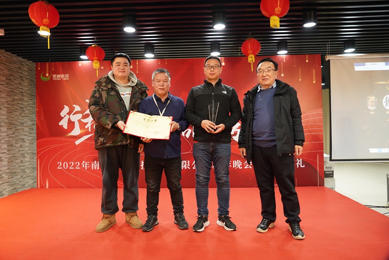 本次先進表彰設(shè)立先進員工、優(yōu)秀管理干部和工程項目開通專項獎三個獎項。經(jīng)層層推薦、評選,王韜、賈廣金、郁望、姚永、張濤、李志德、王宣和鐘克鵬8位員工榮獲“2021年度先進員工”;趙美思、肖雪慧、魏紅兵和李瑋玲4位員工榮獲“2021年度優(yōu)秀管理干部獎”;為表彰2021年工程項目開通維護中的優(yōu)秀團隊,公司特別頒發(fā)“2021年工程協(xié)同開通團隊獎”,工程技術(shù)中心副總監(jiān)李振峰、卞周進和張雷一同上臺,作為團隊獎的代表上臺接受了公司授予的獎勵。公司高級副總裁倪小龍、總工程師陳建平及監(jiān)事長袁志杰分別為為各位獲獎?wù)哳C發(fā)了證書和獎杯并親切合影留念。