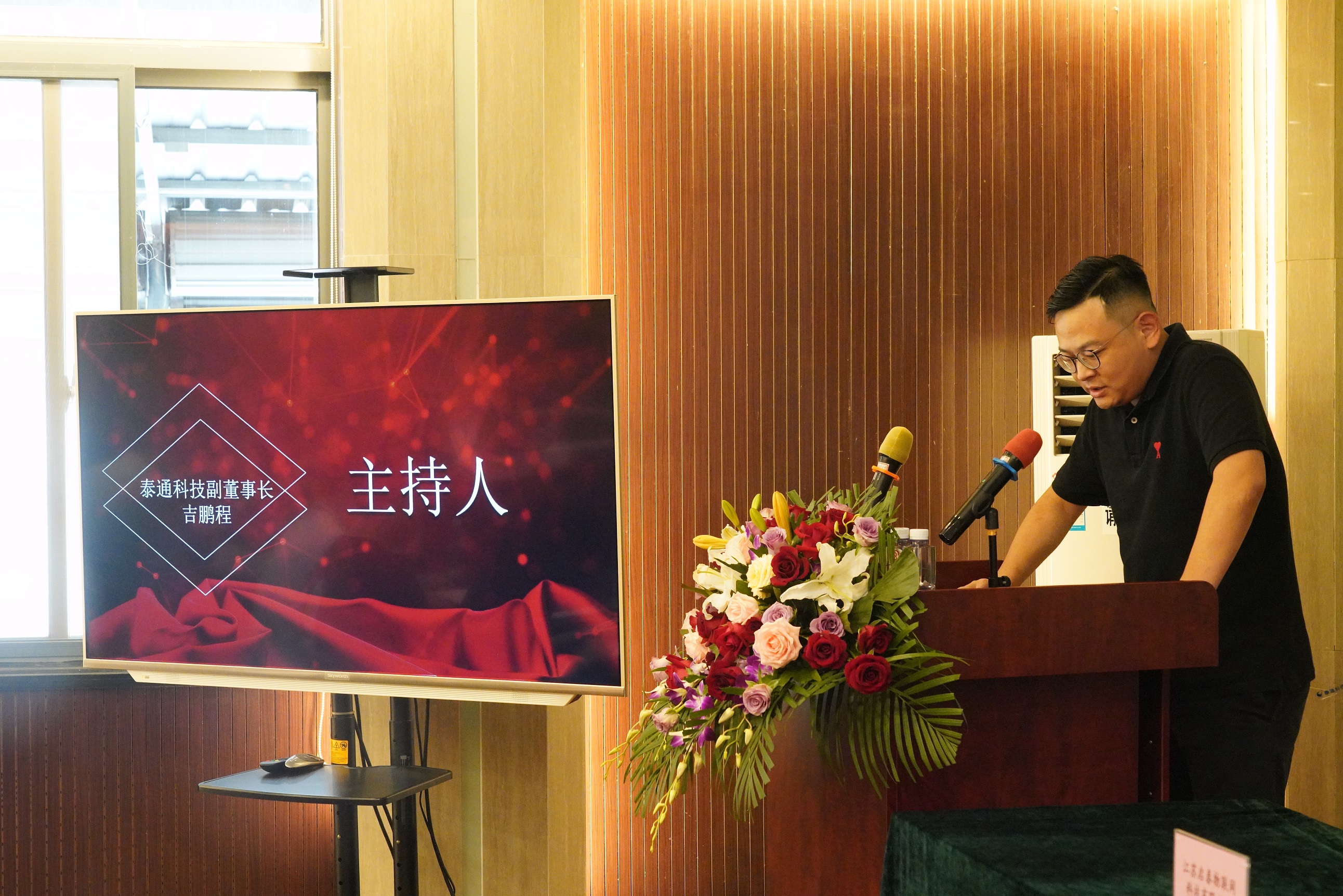 下午兩點三十分許,創(chuàng)始人吉榮新、泰通科技董事長陳建平等公司領(lǐng)導陪同與會嘉賓共同步入會場,在泰通科技副董事長吉鵬程的宣布下揭牌儀式正式開始。