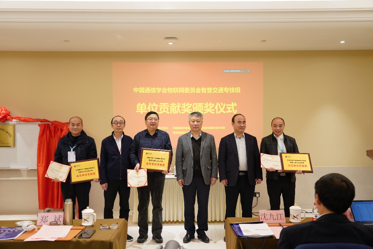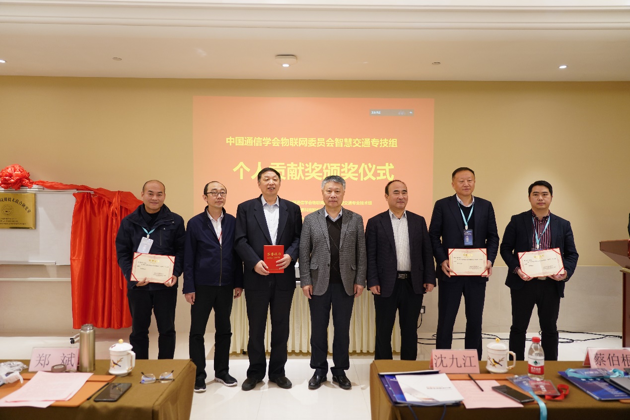 智慧交通論壇主席鄭斌、大會組委會主席朱洪波、中國通信學(xué)會學(xué)術(shù)工作部副主任吳杰向東南大學(xué)、中國中鐵電氣化局集團(tuán)有限公司、上海錦申鐵道科技有限公司三家2020年度單位貢獻(xiàn)獎獲得者,以及沈九江、宋鐵成、李正川、路曉彤、劉立海、屈毅、藺偉、馬麗蘭8名個人貢獻(xiàn)獎獲得者頒發(fā)了獎牌或證書。